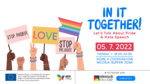Each year during May and June, Pride Marches take place to highlight the LGBTI+ community and its existence and rights across Cyprus. These marches are organized to make the LGBTI+ struggle visible and to raise awareness in society. Unfortunately, every year after these marches, hate speech and negative comments are posted across social media platforms. Such negative comments and discourses deeply affect the LGBTI+ community and allies. In particular, hate speech and online harassment negatively affect mental health and well-being. We invite everyone interested in the thematic discussion event, "In It Together: "Let's Talk about Pride and Hate Speech" co-organized by Queer Cyprus Association and Bubble Out Cyprus, to discuss the effects of hate speech on those who experience them. The session will be moderated by a certified psychologist with an expert background in LGBTI+ issues and will give participants the opportunity to share their stories and experiences in a safe and supportive environment. To participate in the event, please pre-register by filling out our Thematic Discussion Registration Form. The event will be held in English and language support will be provided to those who have difficulties expressing themselves in English.