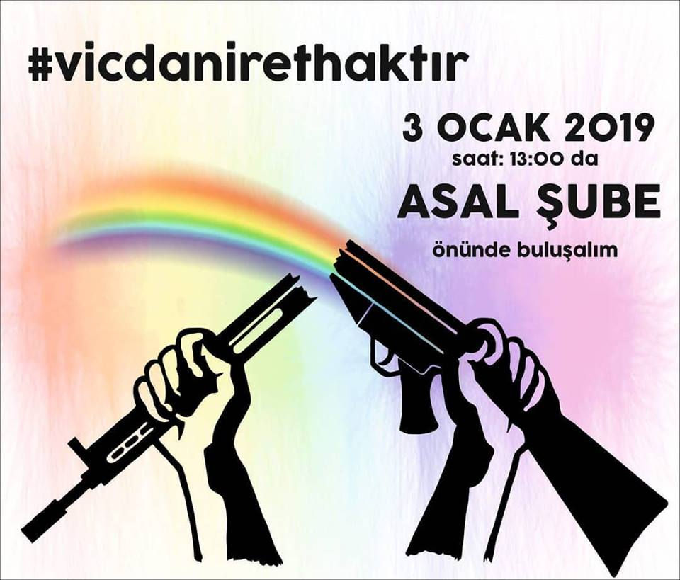 Vicdani reddini açıklayarak askere gitmeyen, seferberliğe katılmayı, savaşın hazırlıklarını yapmayı reddeden vicdani retçi Halil Karapaşaoğlu’nun davası 3 Ocak 2019’da Askeri Mahkemede görülmeye devam edecek ve Halil’in hapse atılması söz konusu olabilir... Militarizm, katı toplumsal cinsiyet kurallarını dayatır ve bundan beslenir. Askerlik kurumu ve ordu özünde erkektir. Kökleri, erkekliği güçlü ve agresif, kadınlığı da zayıf ve pasif olarak tanımlayan heteroseksist bir toplumsal cinsiyet tahayyülüne dayanır. Biz lezbiyen, gey, biseksüel, trans, interseks ve artılar (LGBTİ+) ise, örgütlü ve bireysel var oluşlarımızla bu dayatmalara meydan okuruz. Militarizm, kimin yaşamını savunmanın değerli, kiminkinin de değersiz olduğunu belirleyen ırkçı, milliyetçi ve hiyerarşik bir dünya düzenine dayanır. Militarizm için türk, heteroseksüel, cisgender, engelsiz erkek dışında kalan herkesi ötekileştirmek varlığını sürdürmesi için ihtiyaçtır. Bu yüzden de, engellileri, feminen eşcinselleri ve transları askere almaz. LGBTİ+ mücadelesi ise tam da militarizmin arkasındaki yaratılmaya çalışılan bu homojen ve ayrıcalıklı grupların var olmaması gerektiğini gösterir ve ötekileştirme ile mücadele eder. LGBTİ+ özgürlük mücadelesinin başından beri, erkek egemen militarist bir sistem içerisinde eşitliği değil, toplumların radikal ve köklü bir şekilde değişimini savunmakta olduğunu hatırlatırız. Zorunlu askerlik ve seferberliğin militarist bir yapılanmanın en görünür suretlerinden biri olduğundan hareketle, anti-militarist olduğu için askere bir gün daha dahi gitmeyi, silah tutmayı, kendi gibi olmayanları öldürmeyi reddeden, miltiarizmin, heteroseksizm, ataerki ve milliyetçilikle oluşturduğu “biz”in dışında duran, baskıya boyun eğmek yerine vicdanını dinleyenlerin yanındayız. Vicdani retçi Halil Karapaşaoğlu’nun cezaevine girme ihtimalinin olduğu böylesi bir anda, Kuir Kıbrıs Derneği olarak, 3 Ocak Perşembe günü saat 13:00’de Askeri Mahkemede görülecek olan davalarında olacağız ve tüm anti-militaristlerin ve barış aktivistlerinin orada olmaya çağırırız… #vicdanirethaktır